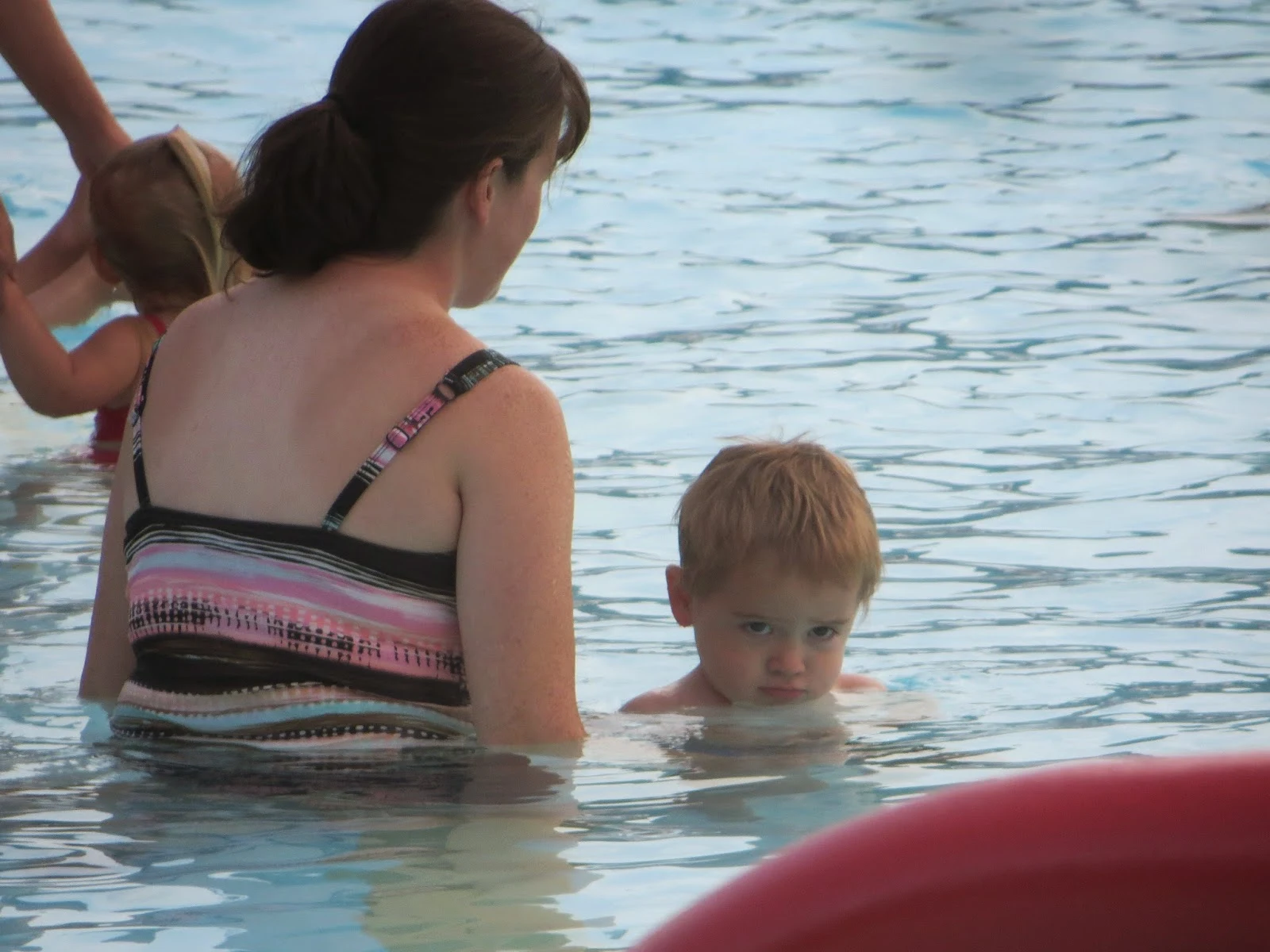 It's that time of year again! Kind of like last year, it has been a little chilly for swim lessons. The first day was in the 90's but the next 3 it was much cooler. Sam still isn't a fan of the cooler days.