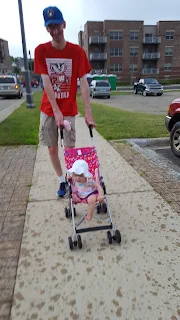 Joey learned how to ride his bike on 2 wheels at the end of June. I was mowing the lawn, and Matthew came back and told me, "Joey is riding on two wheels." I went out front, and sure enough, he was. Laura had helped him stay steady and then it just clicked with him!