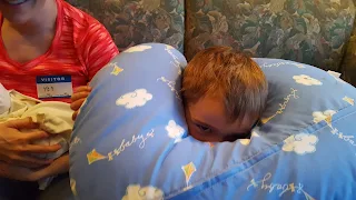 We got to meet Linus!! He was a little sad at first (I love Joey's expression), but then he went to sleep. The boys loved holding him (especially Joey).