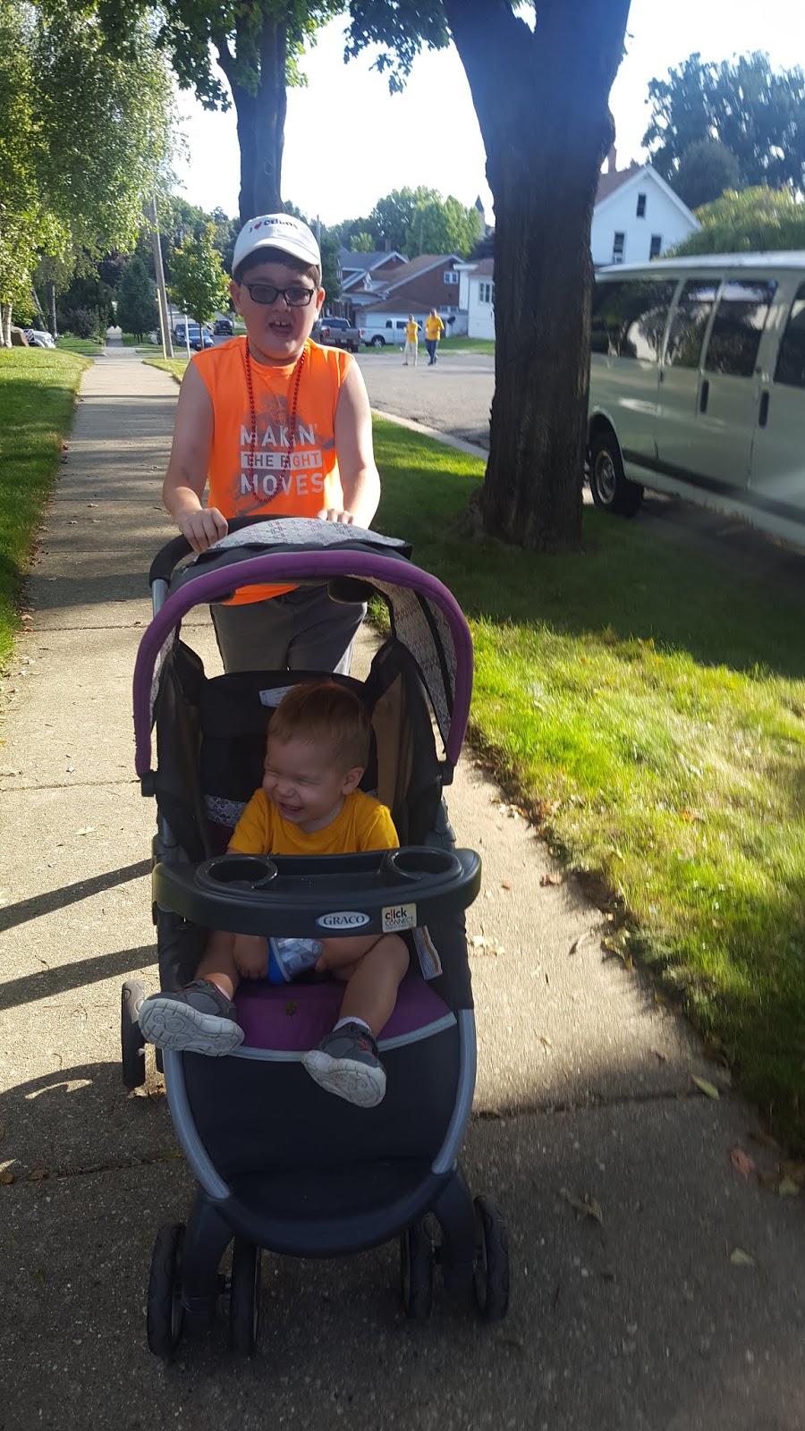 The walk back: Joey was doing some crazy stroller driving which Linus thought was hilarious!